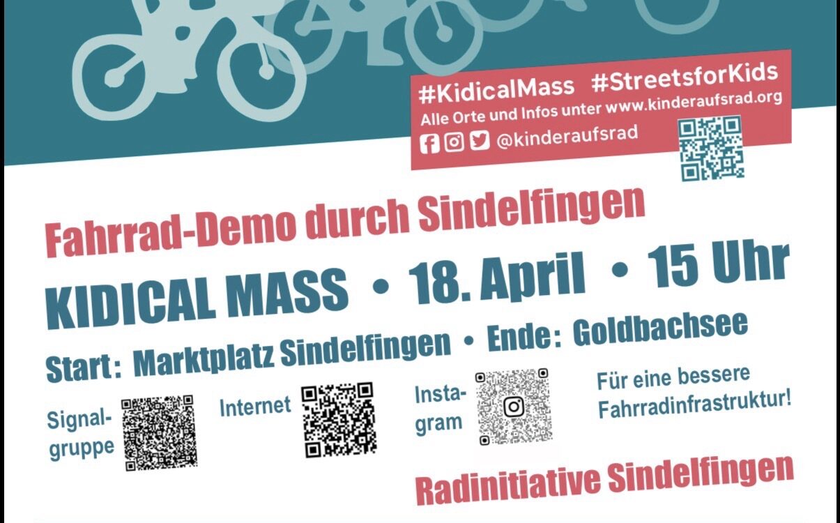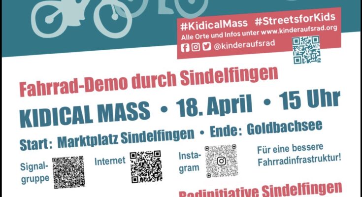 Die 5. Kidical Mass in Sindelfingen startet am Samstag, 18. April um 15:00 Uhr!